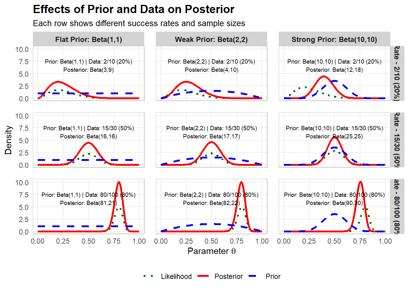 Impact on posterior from prior and data