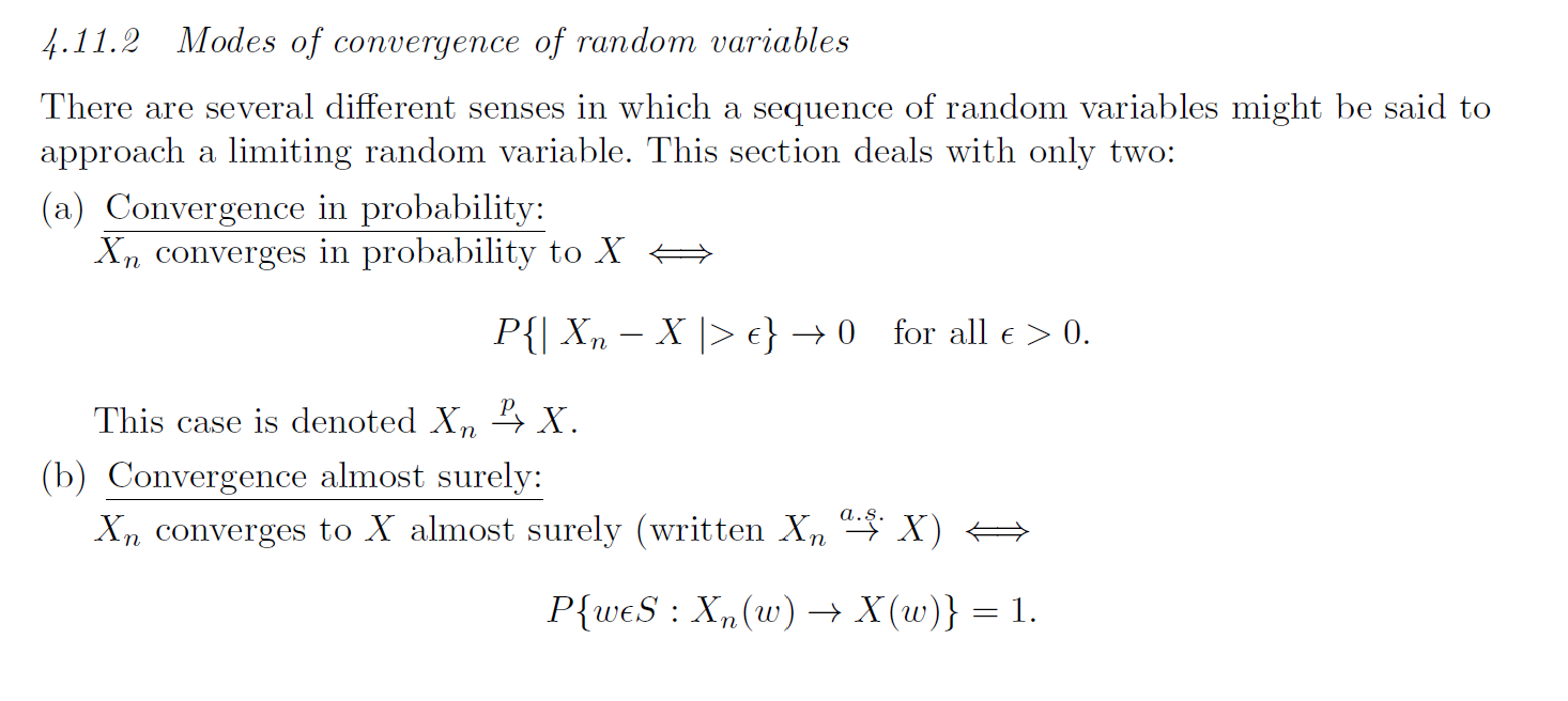 \[\bar{X}_n = \frac{1}{n}\sum_{i=1}^n X_i \overset{a.s.}{\rightarrow} \mu\]
