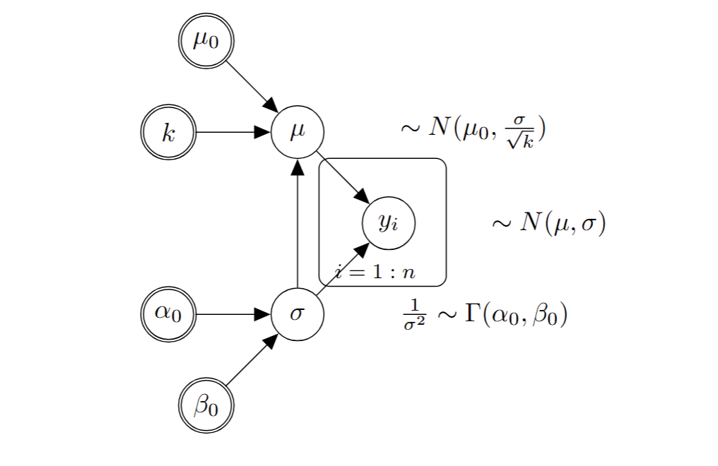 Hyper-parameters: \(\mu_0\), \(k\), \(\alpha\), \(\beta\)
