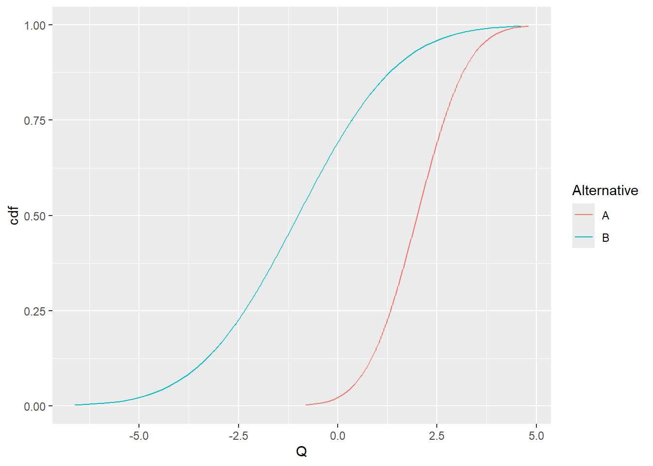 df <- data.frame(Q = c(qnorm(pp,2,1),qnorm(pp,-1,2)), cdf=pp,Alternative = rep(c("A","B"),each=length(pp)))