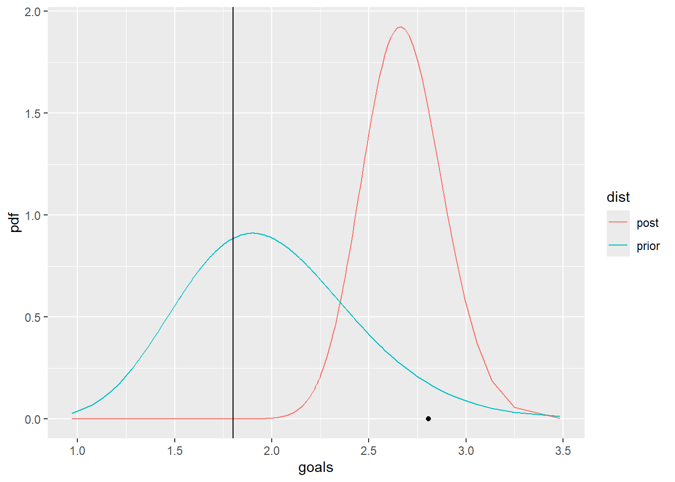 pgamma(1.8,shape=s_post,rate=r_post)[1] 9.125193e-07